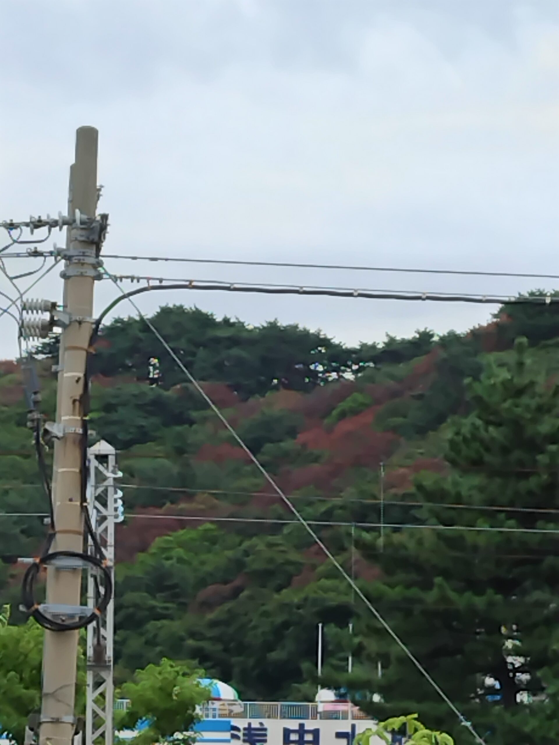 テレビでは浅虫の山の映像が出ていたのですが、先日平内にいった際に帰りに車を止めて写真をとりました。あきらかに紅葉とは異なり茶色く変色しておりました!