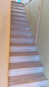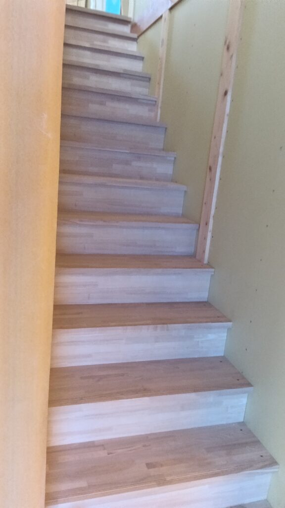 サイエンスホーム建築中! 施工状況251205101248379 2025.12.09 こんにちは。山田です。現在着工中の サイエンスホームは内部造作真っ最中です。 階段入りました!サイエンスホームの色は 初めはこのように白木の状態です。 終わってから着色していきます。 251205101248379