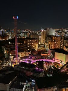 近くのもつ煮が有名な居酒屋さんで食事してホテルに戻ってスカイロビーに!