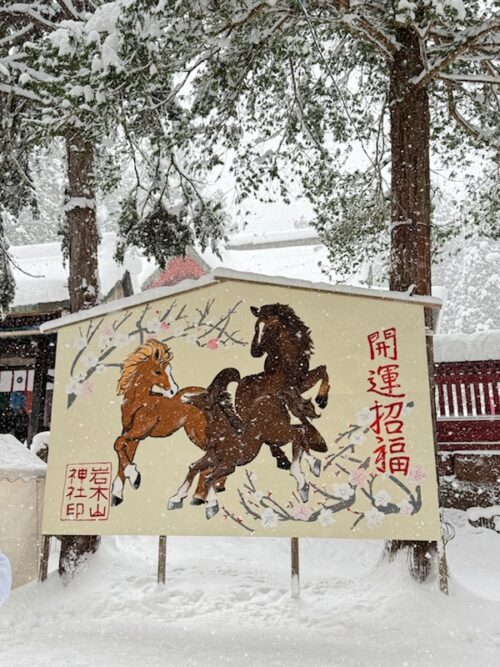 ⛩岩木山神社⛩ 日々の出来事 2026.01.11 こんにちは! 今年の初詣は“岩木山神社”に行ってきました~ お目当ては長女が午年なので大きな絵馬と写真を撮ること📸 足元がツルツルで何人か滑って転んでいて怖かったです(・・;) 道中かわいい女の人が雪だるまを作っていたので 写真を撮らせて頂きました~⛄💖 帰りには、お札と娘に巨大絵馬と同じ絵馬と、なんだかたくさん 買いました~ 今年も何より健康で楽しく幸せな年でありますように~😊