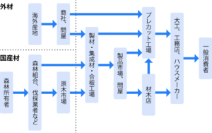 そこから材木店が製材品を仕入れ、大工・工務店と