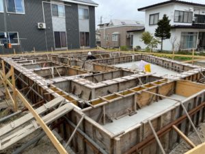 つがる市で基礎工事の現場も