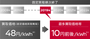 FIT終了後は、買取価格が大幅に下がることから