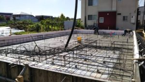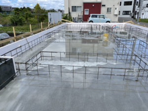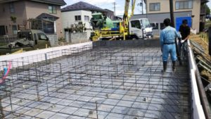 ベタ基礎の鉄筋組も終えて、いよいよ