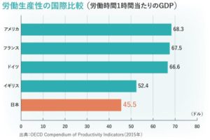 日本の(労働)生産性は、OECD加盟35カ国の