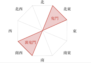 家の方角が確認できたら、「鬼門」「裏鬼門」